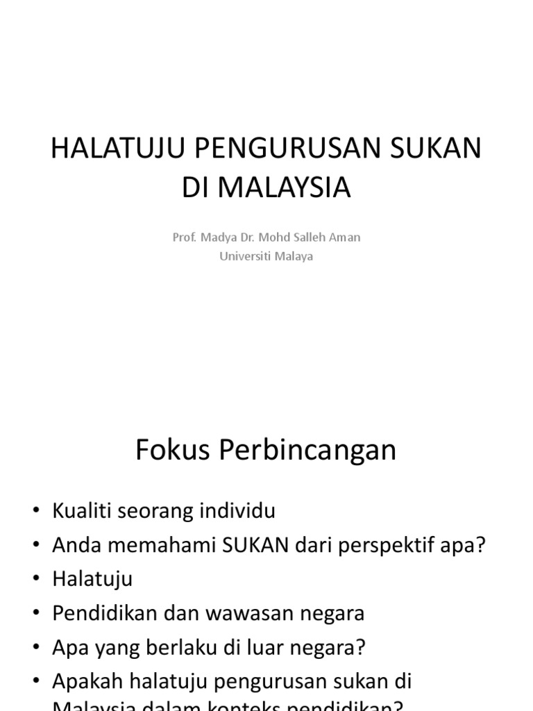 Halatuju Pengurusan Sukan Di Malaysia Pdf