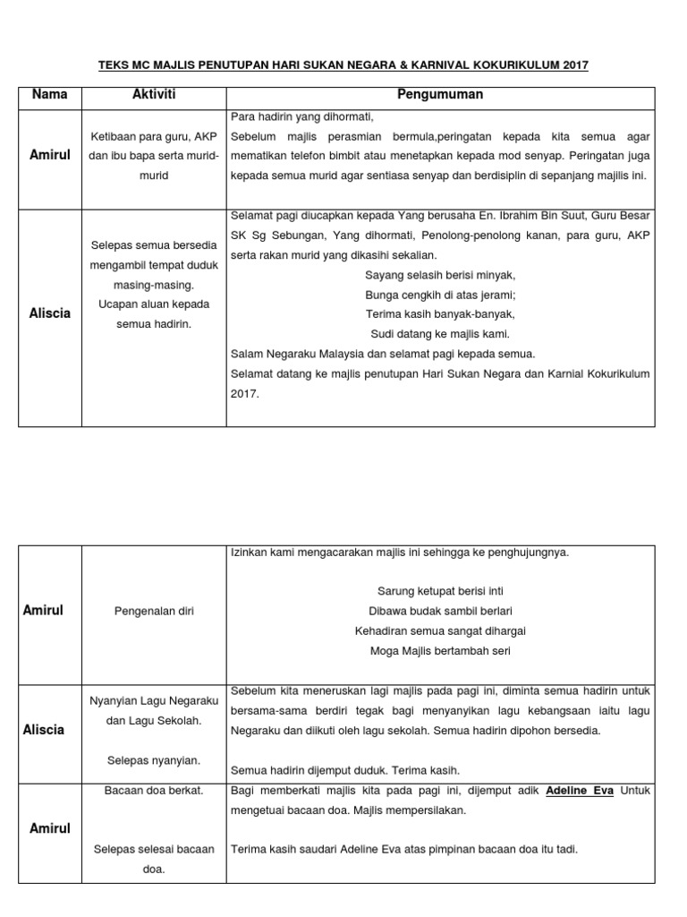 Skrip mc sukan. Banyak orang merasa sulit untuk menjadi. Amir Amzah bin Abdul Hamid Pegawai LINUS Numerasi PPD Daerah Barat Daya berserta rombongan dengan diiringi oleh En.