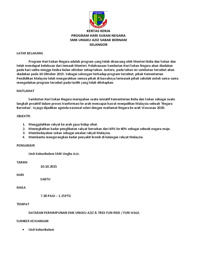 Kertas Kerja Program Hari Sukan Negara S Pdf