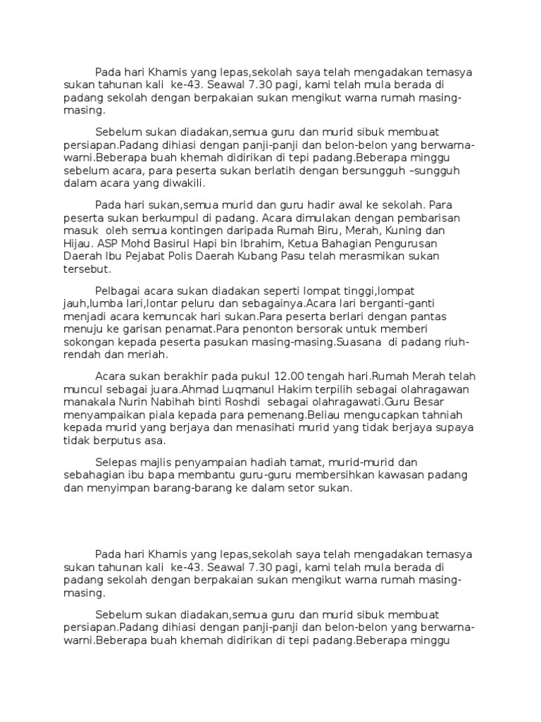 Contoh karangan laporan kejohanan olahraga tahunan sekolah contoh karangan.